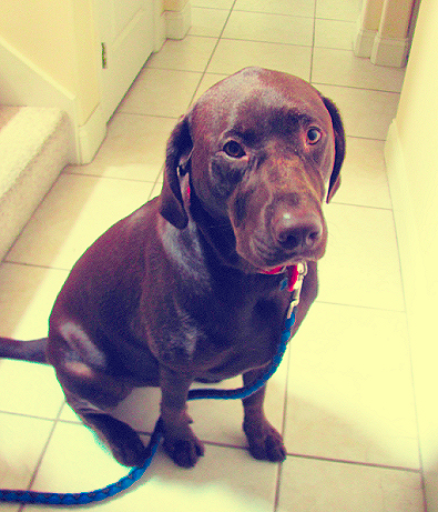 So... this recipe is actually a mistake. I had intended to make something akin to peanut butter cups in square form. However, during my recipe process, my dog Denali (pictures below) decided to headbutt me, causing the chocolate chips to fall into the peanut butter and mix.